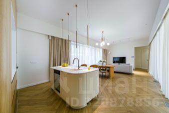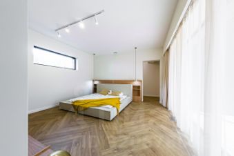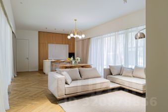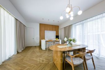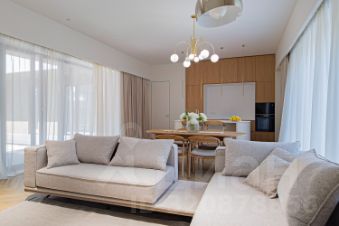 При создании интерьера применялись премиальные отделочные материалы и высокие двери.