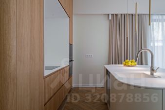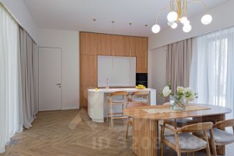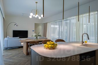 Мебель выполнена из натурального шпона, а также продуманы системы хранения и вспомогательных помещений. Дом оснащен европейской встраиваемой техникой.