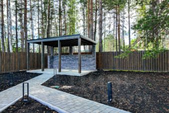 Уделено особое внимание благоустройству прилегающей территории. Основные элементы: