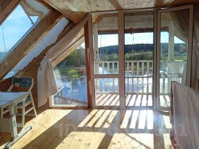 На участке уютный дом в 3 этажа с панорамными окнами, откуда открывается вид на водную гладь. Близость к лесу добавляет шарма - здесь можно собирать грибы, гулять по тропинкам или просто наслаждаться тишиной, вдали от городской суеты.