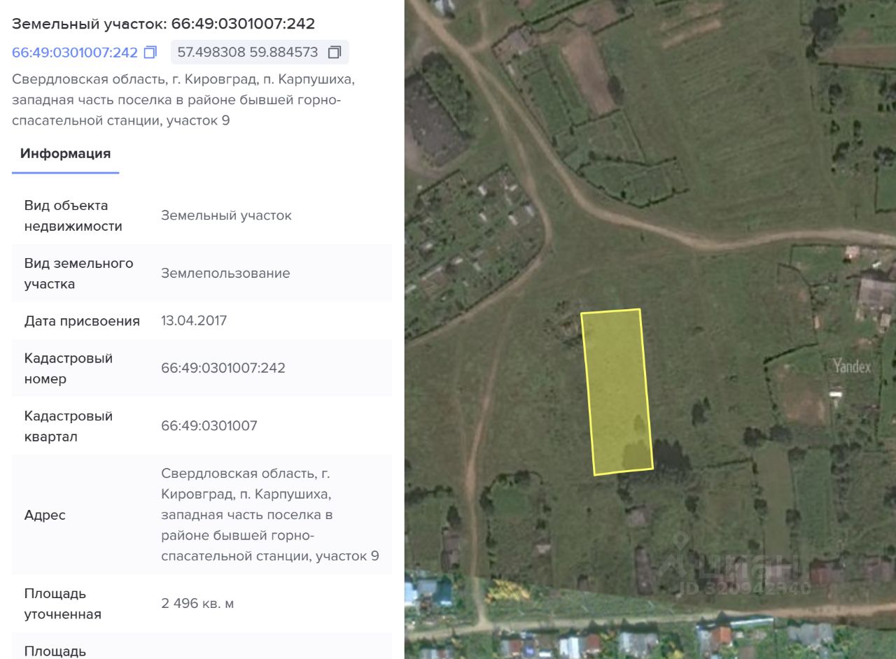 СРОЧНАЯ ПРОДАЖА! земельный участок 24,96 соток в п. Карпушиха Кировградского муниципального округа - 66:49:0301007:242.