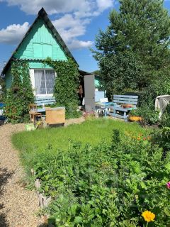 Второй дом совмещен с баней: на первом этаже расположена сама баня с предбанником и террасой, а на втором — уютная благоустроенная комната, пригодная для круглогодичного проживания. Участок оборудован уличным санузлом, зонами отдыха и всем необходимым для загородного быта.