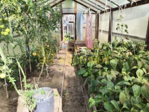 На участке, помимо дома, расположены баня из бруса размером 6х3 метров, теплица и капитальная овощная яма. Участок площадью 15 соток ухожен и насаждён разнообразными фруктовыми и ягодными культурами: пять яблонь, смородина, крыжовник, вишня, черноплодная рябина, картофель и т. д.