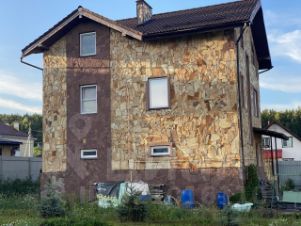 В дом заведены все коммуникации: газ, вода(скважина), канализация(септик), электричество. Коттедж построен из блоков, крыша изящная черепица, утеплитель 10 мм, отделан натуральным камнемотопление-газовый котел.
