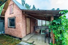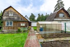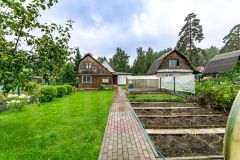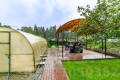 Территория участка ограждена забором, оборудовано парковочное место для автомобиля под навесом. Есть кирпичная баня, в ней недавно заменена печь. И садовый дом, который можно использовать в качестве летней кухни и хозяйственного помещения.