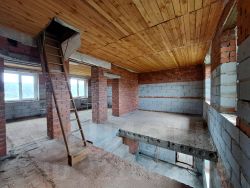 Дом построен из газозолоблока, утеплитель 10 см пенопласт и облицовочный кирпич. Перекрытия между этажами - железобетонные плиты, перегородки кирпичные.