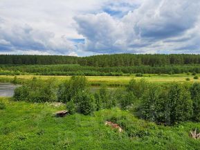 Дом расположен в живописнейшем месте у реки Исеть. Вид из окна смотрите на фото. Дом стоит на горке. Участок с плодородной почвой - ровный. 13 соток по границе. Реально до реки гораздо больше соток.
