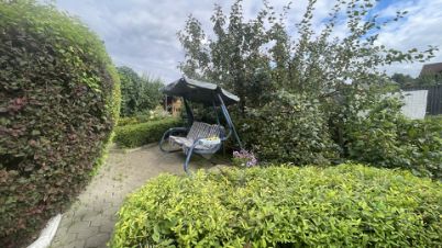 Так же на участке есть две теплицы (6 и 8 метров), две зоны для отдыха с качелями, ландшафный дизайн(много красивых кустов и растений)открытая зона барбекю, закрытая конструкция для размещения бассейна (летний период), тент под хранение мотоцикла, летний туалет. Около 15 грядок с различными насаждениями, 6 яблонь (одна из них столетняя), 2 голубые ели, 3 сливы, 2 груши, ирга, 3 зоны с малиной, 2 зоны под посадку картофеля, 5-6 вишен, 5 кустов со смородиной, крыжовник, 2 куста с жимолостью, две сирени, рябина, черноплодная рядина, черевишня, кедр, цветник 20 метров, два цветника рядом с беседкой, множество декоративных растений. Отсыпана стоянка. За воротами и перед ними. На участке подготовлено место под постройку большого дома-коттеджа. Планировали возводить дом 10 на 12.