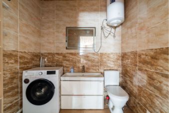 В доме на 2 этаже две жилых комнаты, 1 этаж оборудован как студия, совместно с кухней.