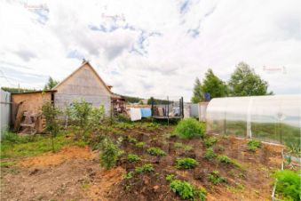 На участке баня, сарай, теплица, посадки.