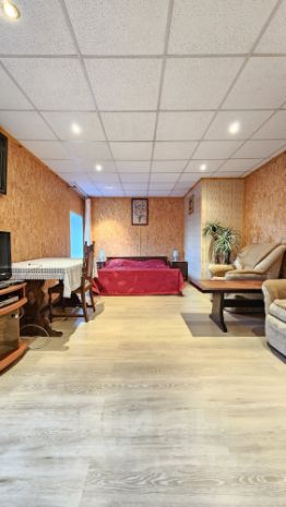 0 этаж: Большая светлая жилая комната с отдельным входом и санузлом, душевой кабиной.