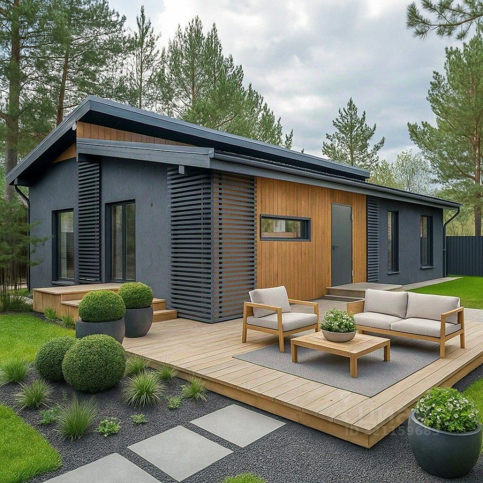 * В доме: просторная кухня-гостиная 29 кв.м, две спальни 12 и 21 кв. м., прихожая, крыльцо.