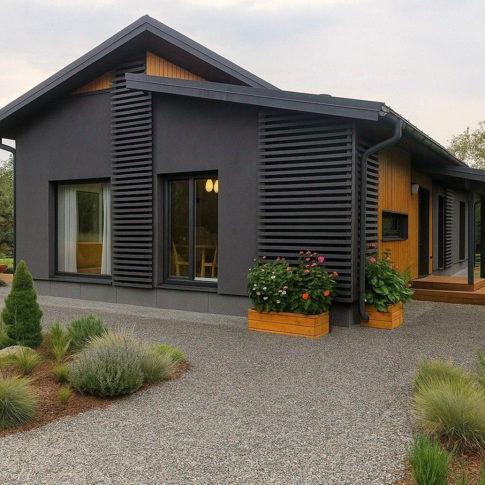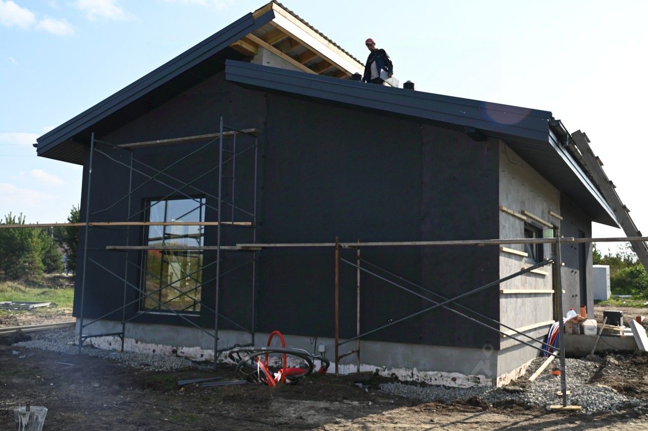 * Дом из качественного газоблока с утеплением фасада 100 мм, крыша двухуровневая с красивой мягкой кровлей TechnoNICOL.