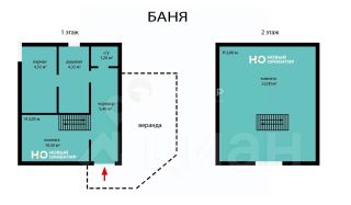 **Баня: Двухэтажная, 47.2 кв.м. с верандой и спальней на втором этаже.