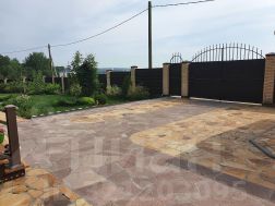 - территория вокруг дома выложена плитняком, основание армировано сеткой, дорожки выложены плиткой Берит
