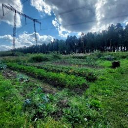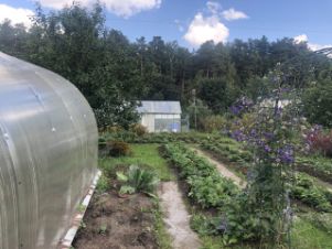 Напротив участка, за забором сада разработан участок для посадки картофеля, капусты, кабачков и моркови.