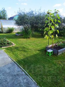 Земельный участок площадью 6 соток. На участке Скважина глубиной 80 метров, септик, летний туалет, две теплицы, мангал, многолетние деревья, кусты, участок весь засеян газонной травой.