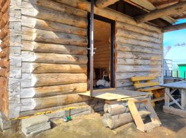 На участке построен новый Дом из бревен, периметр дома 6*6, на ленточном фундаменте (фундамент заглублен на 1,2 метра, бетон заливали миксером), крыша покрыта проф настилом, предусмотрен навес для террасы или пристроя 3*6, сделан проем под лестницу на мансардный этаж(мансардный этаж не готов), в доме на первом этаже установлены пластиковые стеклопакеты, входная сейф-дверь, электричество заведено в дом и подключено, по потолку точечные светильники! В доме останется мебель: диван и шкафы! Дом отлично расположен, со всех сторон много света!