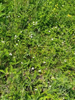 На участке стоит старенькая банька. Со стороны единственных соседей установлен забор. Участок сухой, весь покрыт земляникой и цветами. В конце участка протекает небольшая речка Шарама.