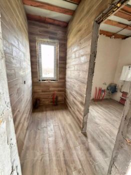 дом из полистиролбетонных блоков, на участке 6 соток. в доме произведена укладка пола керамогранитом и частично стен в санузлах. остальная отделка- под чистовую. электричество в доме разведено.