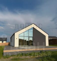 Остался один дом по данном проекту: просторная гостиная с панорамным окном , мастер-спальня со своим гардеробом и санузлом, две комнаты свободного назначения, гостевой санузел, котельная-постирочная с отдельным выходом во двор.