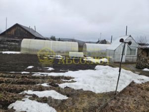 Две новых теплицы из поликарбоната, баня с заведенной водой и просто шедевр - большой дровяник вдоль забора. Гараж на 2 машины.
