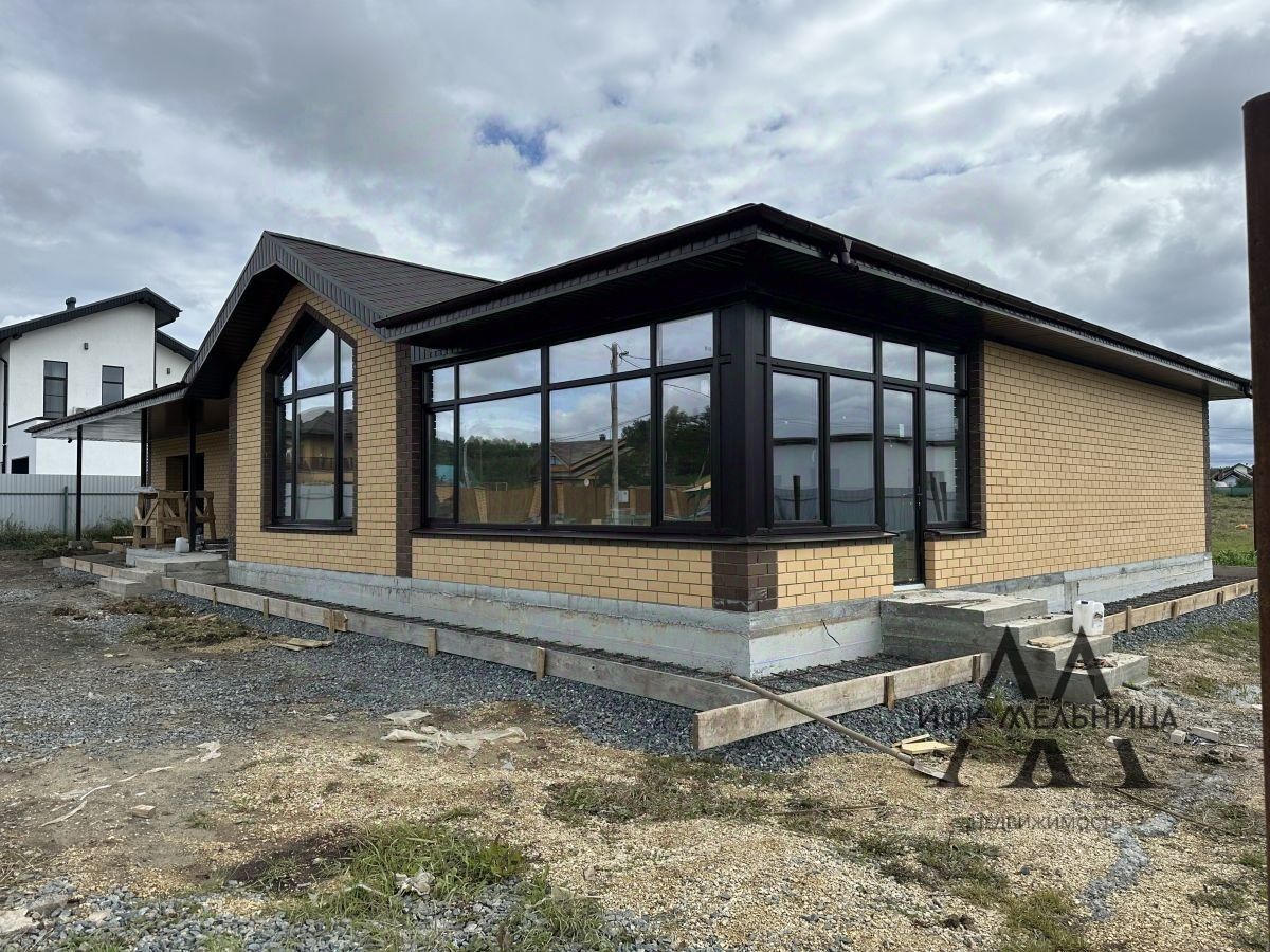 Современный, одноэтажный кирпичный дом. Расположен на участке 10 соток. Асфальтированная дорога. Дом выставляется на продажу в формате White box с полностью готовыми инженерными системами. По Вашему запросу может быть произведена чистовая отделка.