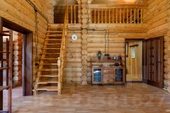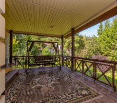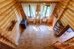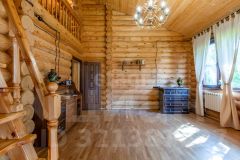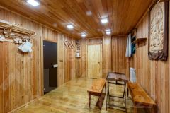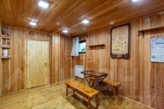Гостевой дом из сруба площадью 113 кв. м. включает две комнаты на первом этаже и мансардный уровень, санузел, а также автономный банный комплекс с комнатой отдыха, душевой и парной. К дому примыкает помещение для хранения инвентаря. На участке оборудован открытый стационарный бассейн глубиной 180 см. Объект обеспечен полным комплексом инженерных коммуникаций: централизованное водоснабжение от артезианской скважины, автономное электроснабжение от собственной подстанции с основным и резервным вводами, магистральный газ, центральная канализация, высокоскоростной интернет и кабельное телевидение.