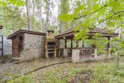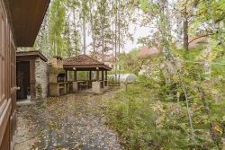 В доме предусмотрены удобные помещения для жизни и отдыха, третий этаж площадью около 80 м² и камин для теплых вечеров. Участок ровной прямоугольной формы, выполнен ландшафтный дизайн. Есть бассейн, ручей, беседка, дровяник и освещение по всей территории. Коммуникации и состояние Все коммуникации заведены: газ, электричество, канализация и собственная скважина. По дому полностью заменены трубы водоснабжения и отопления. Состояние — требуется косметический ремонт, что позволяет сделать интерьер под себя.