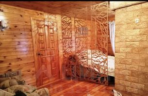 -Отдельно стоящаю баня 26,6 кв.м. : современная, жаркая, с уютной комнатой отдыха. Стены из липы, полки из Абаши. Печь фирмы Harvia.