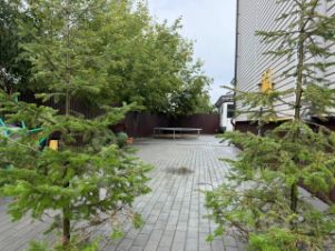 Дом расположен на земельном участке, который вымощен полностью тратуарной плиткой.