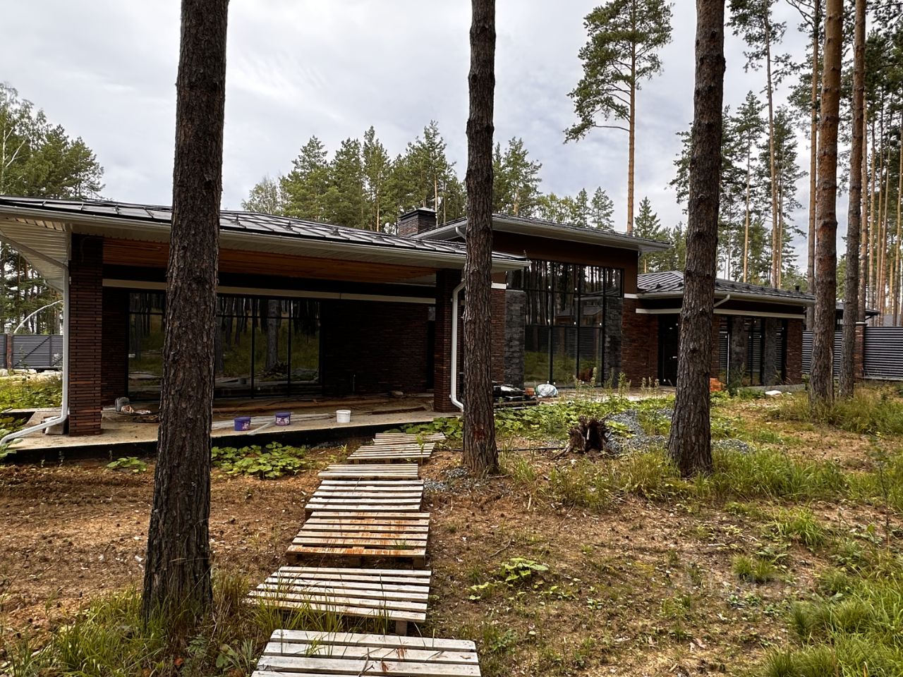 Продается дом общей площадью 518.6 м2, в предчистовой отделке на большом участке 22,2 сотки выходящем прямо в лесной массив. Дом в стиле Райт(стиль прерий), построен из материалов премиум класса, строился с любовью для своей семьи. Кирпич ручной формовки евроразмера завода Скрябин, внутри газоблок ИНСИ. Фальцевая кровля премиум сегмента, на заказ Московская область. К дому подключён газ. Котельная собрана полностью нержавеющей трубой, установлено два Немецких котла Vaillant, плюс резервный электрический Proterm. Насосные группы тоже премиум качества. В доме предусмотрен бассейн размером 7,5 на 3,5 метра, под бассейн залита бетонная чаша. Предусмотрено помещение под хамам. Расположение комнат и помещений в доме продумано до мелочей . Окна выполнены из алюминиевого качественного профиля на одной из крупнейших фабрик города Екатеринбург. Во всю стену зала сделано витражное окно выходящее в лес. В доме полностью разведено отопление, водяные тёплые полы. Возле окон внутрипольные конвекторы. Согласно проекту полностью разведено электричество. Внутренний дизайн помещений будет создан непосредственно под ваш вкус. Забор вокруг участка сделан из серого профиля типа жалюзи. На воротах электропривод. В доме находится гараж. Ещё один гараж не отапливаемый, находится во дворе , непосредственно с воротами прямо с общей дороги.