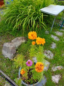 Высажены плодоносящие деревья и кустарники ( яблони , черная рябина, облепиха, малина) Проведено стильное (фонари под старину) освещение во двор.