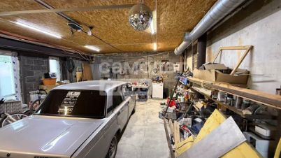 Теплый гараж на две машины с автоматическими воротами, мастерской и плиткой на стенах и полу.