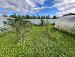 - Участок 12 соток: разработан, посажены деревья, есть клубника, грядки и теплица