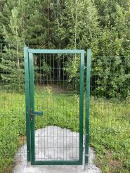 Участок полностью огорожен: двое ворот — одни автоматические откатные, вторые — распашные пожарные. Две калитки. Одна с фасада, другая с тыльной стороны, с выходом в лес. Установлены освещение и видеонаблюдение, есть возможность постановки участка на охрану.
