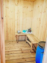 Подходит для круглогодичного проживания. На первом этаже находится комната отдыха, парилка и помывочная. Второй этаж- это спальня. Второй этаж полностью утеплен отделан вагонкой.