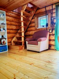 Дом из бревна, двухэтажный.Размер сруба 1 этажа 6*4м. и 6*6м площадь второго этажа.