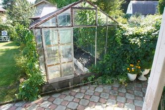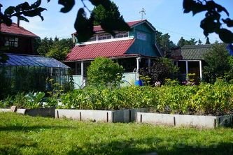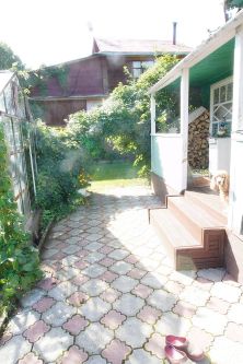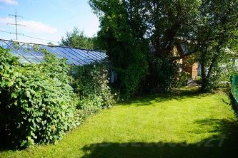 Посажены: клубника, малина, смородина красная и черная, крыжовник, слива, черевишня, 2 яблони. Земля на участке обработанная, грядки обложены по контуру, сделаны широкие борозды. Перед домиком и за теплицей полянка для игр. Можно установить бассейн.