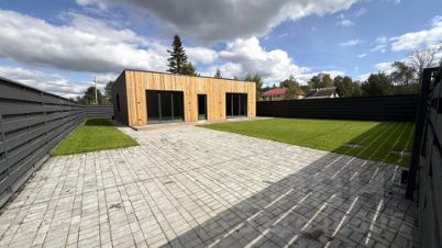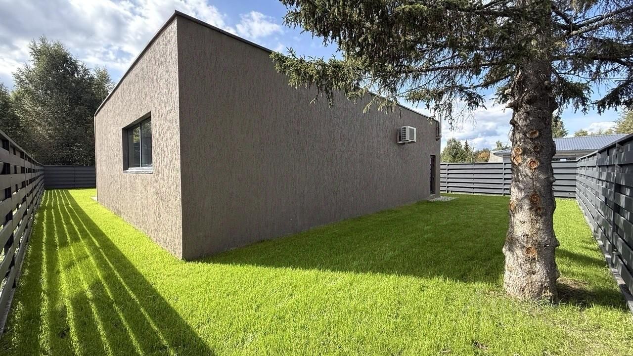 Участок площадью 560 м² с готовым газоном, дорожками и деревьями