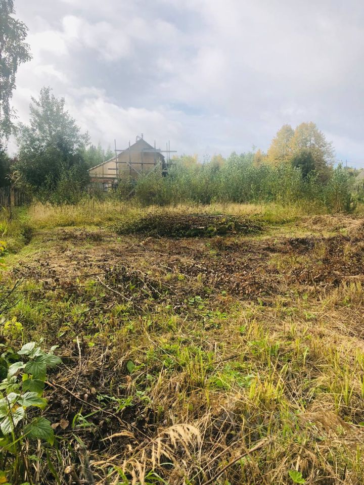 Небольшой участок прямоугольной формы, можно строить, прописаться, на участке растут несколько деревьев. Есть вагончик. Электричество можно подключить. Хорошие соседи. Земля была разработана, пару лет назад садили картошку, торг уместен
