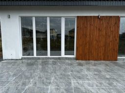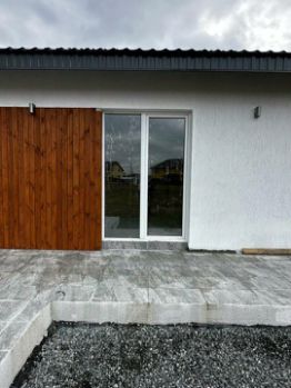 механизированная штукатурка стен и откосов (готовность под обои), полусухая стяжка (готовность под ламинат), плитка на террасе и крыльце, стены в котельной окрашены;
