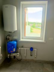 - Бойлер 100л, Разводка горячей и холодной воды по дому + 2 поливочных крана на улице