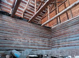 Дом-сруб 5,54,5 м, крыша, веранда 25,5 м, второй этаж.