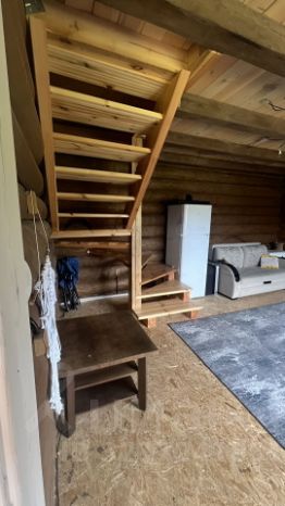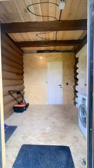 В доме 2 этажа, на первом этаже: прихожая, санузел и гостиная функционалом кухни, на втором этаже 2 комнаты (в каждой из комнат было запроектировано по окну, они уже куплены).