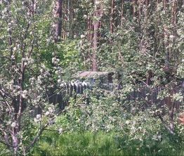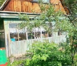 Предлагается к продаже двухэтажный бревенчатый дом общей площадью 60 м² на участке 6 соток в садовом товариществе "Железнодорожник". Участок обладает развитой инфраструктурой для садоводства и комфортного сезонного проживания. На территории расположен гараж для автомобиля, сарай с овощной ямой и уличный санузел. Земельный участок полностью благоустроен: установлена теплица из поликарбоната, высажены плодовые деревья — четыре яблони, а также ягодные кустарники — клубника, смородина, крыжовник и малина. Ландшафт дополняют декоративные посадки жасмина и сирени, а периметр участка прикрывают высокие сосны, обеспечивая уединенность и природный шумовой барьер.