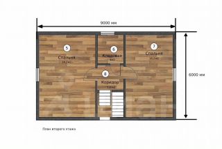 На втором этаже 2 спальни, кладовая.