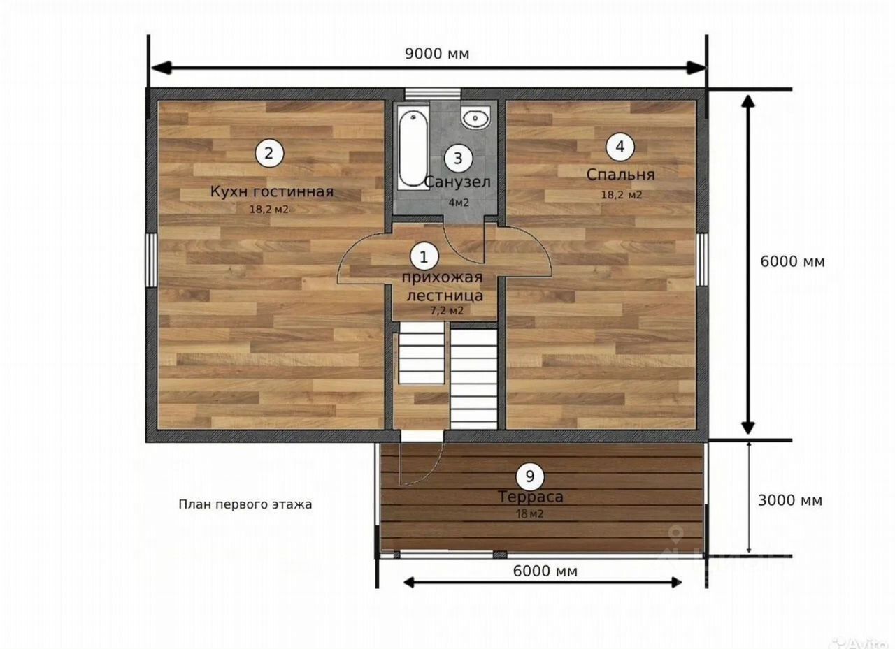 Дом размером 6 х 9 м, 2 этажа полноценных (не мансардные).