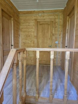 На первом этаже кухня-гостинная, санузел, спальня.