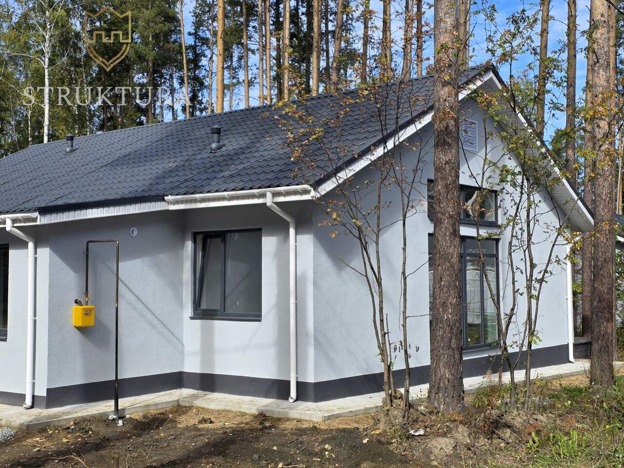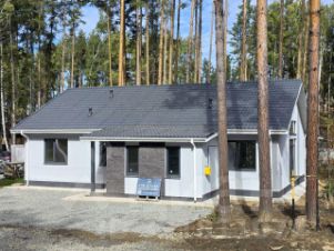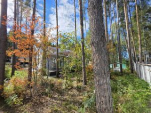 Расположен на угловом участке, а значит у вас будет всего два соседа и есть возможность организовать заезд с двух сторон. Дом гармонично вписался в лесной массив, на участке растут вековые сосны. Посёлок газифицирован, газовая труба проведена подземным способом прямо в дом. На участке хватит места для строительства бани или зоны отдыха с купелью на дровах. По задней границе уже имеется забор, а перед домом отсыпана парковка.